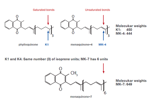 In relation to biological effects, it is important to be aware that the molecular difference between K1 and K2 gives different biological properties.
