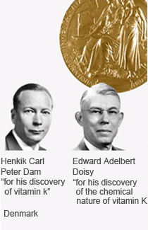 After extensive research this unknown substance was identified, and named factor K – K for the Danish word for coagulation. The nature of this vitamin was revealed several years later – in 1939 – by another scientist, Professor Edward A. Doisy of St. Louis University School of Medicine, US. He was able to describe the molecular structure of this K factor, and to synthesise not only one molecule but several closely related molecules. In this way it was discovered that vitamin K consisted of two groups of molecules; K1 and K2.